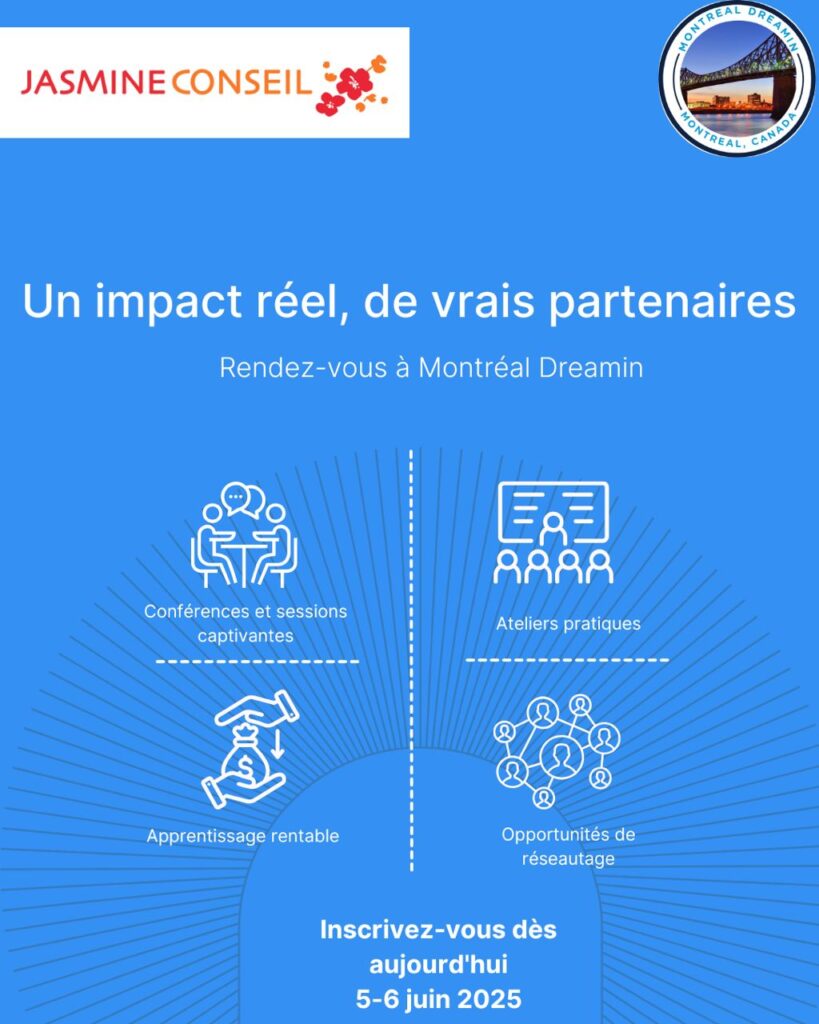 Jasmine Conseil est fier d’annoncer sa participation en tant que sponsor Trailblazer de Montréal Dreamin’ 2025, l’événement de référence pour les passionnés de Salesforce, MuleSoft et de technologies innovantes.