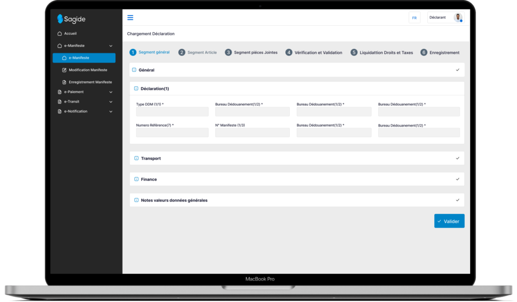 SAGIDE-SW regroupe un ensemble de modules connexes couvrant les procédures du dédouanement tels que certificat sanitaire et phytosanitaire, document d’exonération, certificat d’origine, document de commerce extérieur(licence d’importation ou d’exportation)...